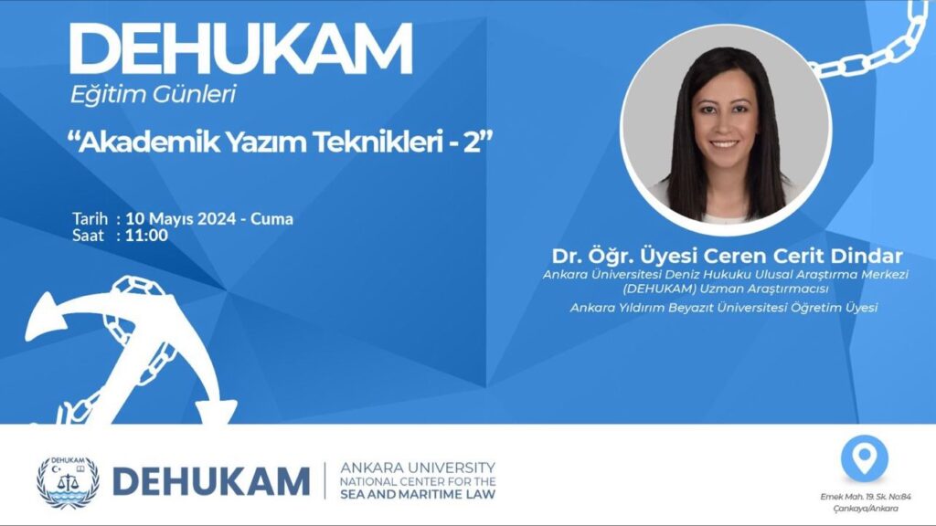 Ankara Yıldırım Beyazıt Üniversitesi Hukuk Fakültesi Öğretim Üyesi ve DEHUKAM Uzman Araştırmacısı Dr. Ceren Cerit Dindar, 10 Mayıs 2024 Cuma günü DEHUKAM personeli ve stajyerlerine “Akademik Yazım Teknikleri – II” başlıklı eğitim verdi. Eğitim programı kapsamında, ileri düzey akademik yazım teknikleri ve akademik makale yazım kurallarının detaylarını anlatan Dr. Ceren Cerit Dindar, katılımcılar tarafından yöneltilen […]